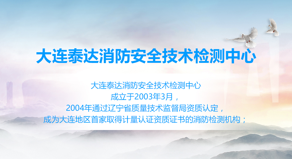 · 大連泰達消防安全技術檢測中心成立于2003年3月,是一家專注從事消防設施維護保養、消防設施檢測、電氣防火檢測、消防安全評估、雷電防護裝置檢測、防火涂料檢測、消防技術咨詢與消防培訓等專業消防技術服務的企業。